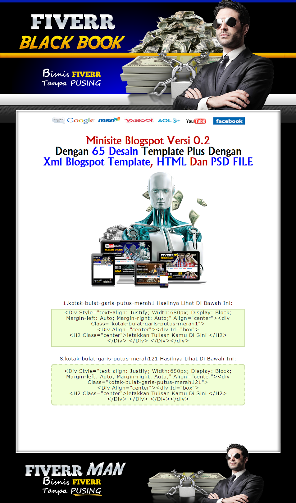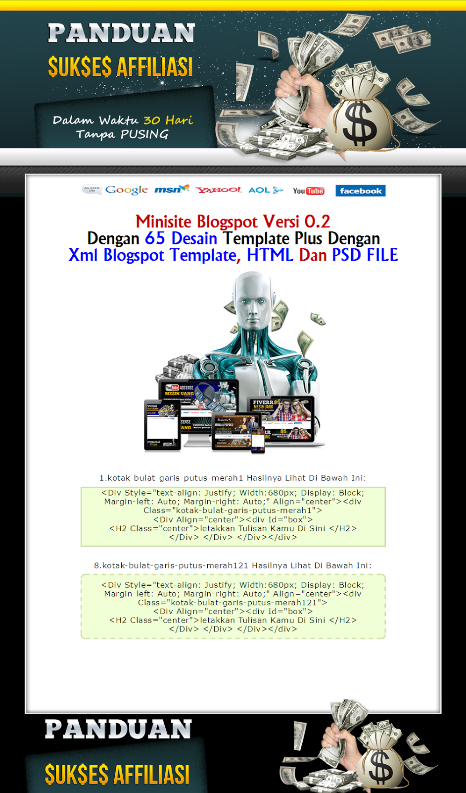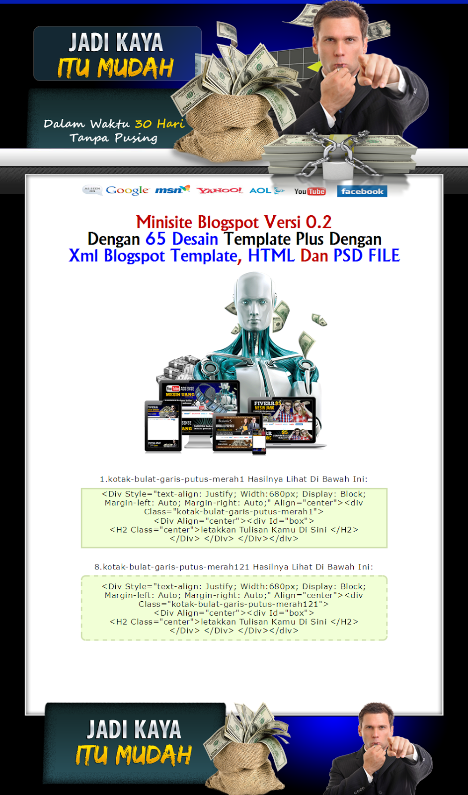 Ya, itulah 3 prinsip yang menjadi daya ungkit kekuatan dari sebuah minisite. Kebanyakan berisi penawaran akan sebuah produk yang berkualitas dilengkapi dengan berbagai grafis gambar dan bahasa yang menjual.