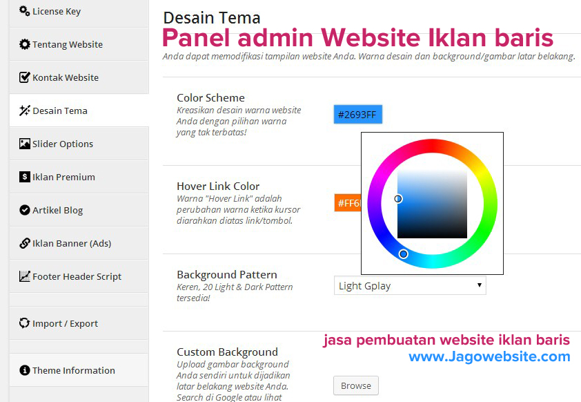Dibawah ini adalah Panel admin untuk website Iklan Baris