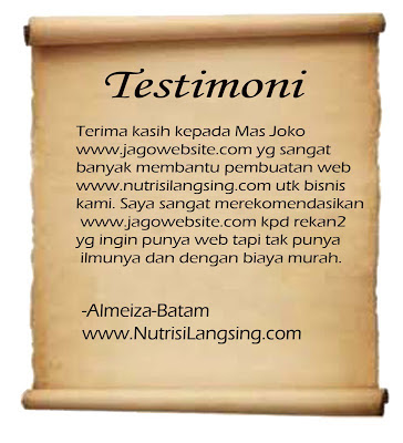 Dibawah ini adalah beberapa testimoni dari Klien yang sudah melakukan order di tempat kami, baik order Jasa pembuatan blog, jasa edit template maupun desain online (desain cover ebook, desain web banner, )
